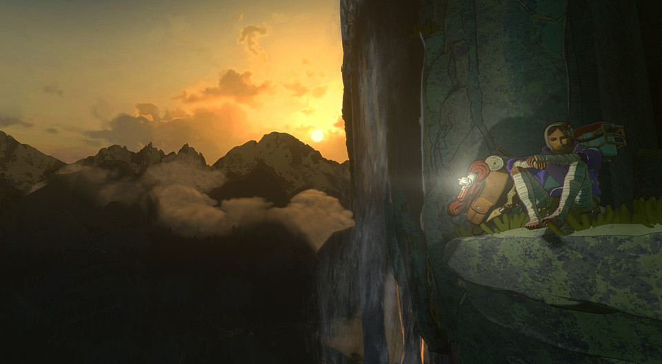 Après avoir joué quelques heures à Cairn et gravi un certains nombre de falaises escarpées, tout en trouvant sur notre chemin des zones d'exploration (parfois bien cachées) offrant quelques bribes de narration environnementales (ou manuscrites via les notes et mots découverts), nous devons avouer que nous avons particulièrement apprécié nos petites victoires sur l'environnement très hostile du jeu. Dans le même temps, Cairn n'a pa toujours été tendre avec nous, et nous avons régulièrement laissé échapper quelques jurons et autres joyeusetés verbales. Certaines voies indiquées comme plutôt faciles nous ont parfois semblé un peu mensongères, la faute à un manque de prises et à des surfaces trop lisses pour progresser sereinement, mais puisque le jeu offre une certaine liberté pour choisir son chemin, on peut progresser en choisissant de se mettre au défi ou non. Tout n'est pas toujours simple cependant, et on vous conseille de ne pas hésiter à utiliser vos pitons régulièrement (et à réussir le QTE par la même occasion), mais de ce que nous avons pu en voir, le voyage semble en valoir la peine. La mécanique de déplacement en escalade est plutôt bien vue, même si l'on échappe pas à quelques contorsions étranges du personnage principal, mais la navigation à pied est parfois un peu maladroite à cause du terrain accidenté sur lequel on évolue. Rien de véritablement gênant au bout du compte, d'autant que l'essentiel des déplacements se passent à flanc de montagne. En revanche, précisons tout de même qu'Aava marche très lentement, et s'il est possible de la faire avancer un peu plus vite en maintenant une touche de la manette, on vous le déconseille fortement puisque cette action fait diminuer sa barre de vie (et on ne comprend absolument pas pourquoi).